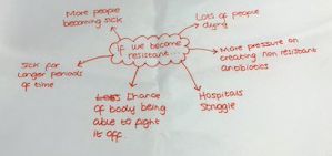 The group then discussed what their understanding of the term antibiotic resistance was, followed by the group watching a video called CATCH. This generated some discussion within the group exploring the consequences of antibiotic resistance. The group had a really good understanding about the implications of antibiotic resistance to individuals (more people becoming sick; lots more people dying; prolonged periods of illness etc.) and society as a whole (more pressure to create more antibiotics and the impact on hospitals etc).